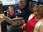 • Grandpa Bill and Grandma Judy came for a visit. Bowie had fun reading stories and snuggling with them, plus she got to go on her first carousel ride!