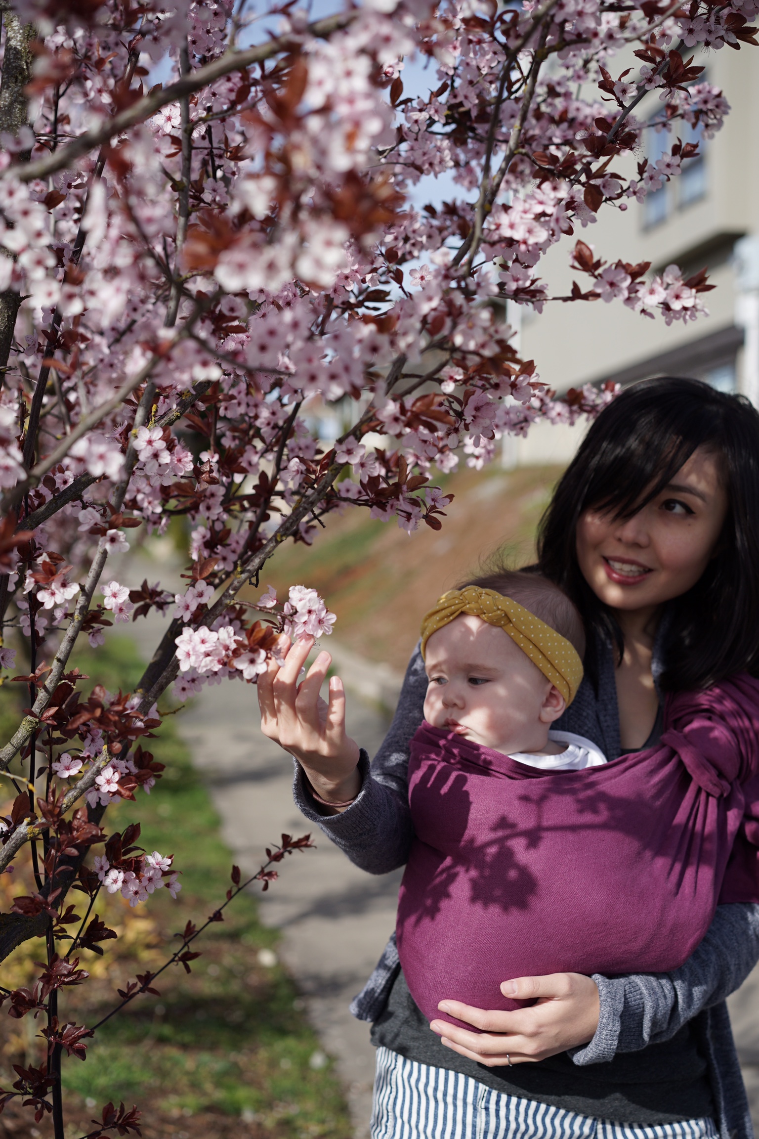 (The Sakura Bloom Sling Diaries have been immensely inspiring to me as a new mom. Seeing parents living beautiful days out with their babies opened a world of possibilities when I felt my options were to either cloister away at home with my kid and my unkempt eyebrows or be too overwhelmed by gear or distance to be functionally sane outside. The Sling Diaries showed me a kind of family life that I hadn’t previously had much exposure to and prompted me to purchase our ring sling, which has made momming more enjoyable and other tasks actually doable. Sakura Bloom is casting diarists for the sixth installment of the series now, and I had to apply if only for the opportunity to share what they’ve given to our family. The following is my entry in response to their theme, “A Day in the Life.”)