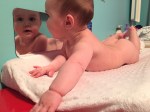 • Rolling onto her tummy is no longer a weird, rare occurrence but a thing she just does all the time when you put her down… and sometimes in her sleep… which causes her to wake up both confused and frustrated until you remind her how to turn back over.