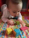 • Bowie’s scoot is now interspersed with actual crawling and what seem to be occasional attempts to simply stand up without the help of something to pull herself up on. Of course, if there is something to pull herself up on, she goes for it. Suitable pulling-up assists may include anything from her activity cube to trustworthy human beings.
