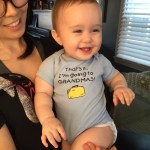 • While at Grandma’s house, Bowie grew in more leaps and bounds, figuring out how to stand up unassisted in the center of a floor, and learning to say “night night” for bedtime goodbyes and “bzzz” when asked what bees say.