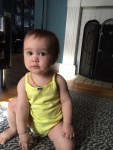 Bowie, our daughter who was Instagrammed by super cool band the Thermals wearing a button celebrating their second LP, is seven months old! A few updates: