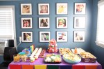 On her actual birthday, we set our gifts in the living room for her to find in the morning under a big parachute (like you may have used in gym class as a kid?). Watching her come out and find them was pretty adorable. We had also started setting up for her party, and she was so psyched to see her year in frames (see the party spread photo) that she just stopped crawling, sat up, and stared for a while. Admittedly, we did pretty much the same thing immediately after Cody hung the pictures up. After her morning nap, Lola arrived and we headed on an adventure to the aquarium, followed by lunch at the Old Spaghetti Factory since homegirl loves spaghetti these days and noodles on birthdays are a tradition in my family.
